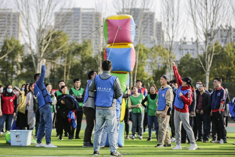 春意盎然,万象更新。3月9日下午,由校工会、体育学院共同主办的 “乐在校园 活力春天”趣味运动比赛在我校第一田径场开赛。主办单位负责人、各二级单位党、政负责人现场观摩了比赛。校工会副主席、女工委主任张寅红为活动进行了简短致辞。 本次运动会共有18支二级党组织组队参加了比赛,经过团结拼搏和激烈角逐,机械工程学院、纺织服装学院、体育学院3支参赛队伍荣获比赛一等奖,建筑工程学院、外国语学院等6支参赛队伍斩获二等奖,生物与食品工程学院、计算机与信息学院等9支参赛队伍取得优胜奖。