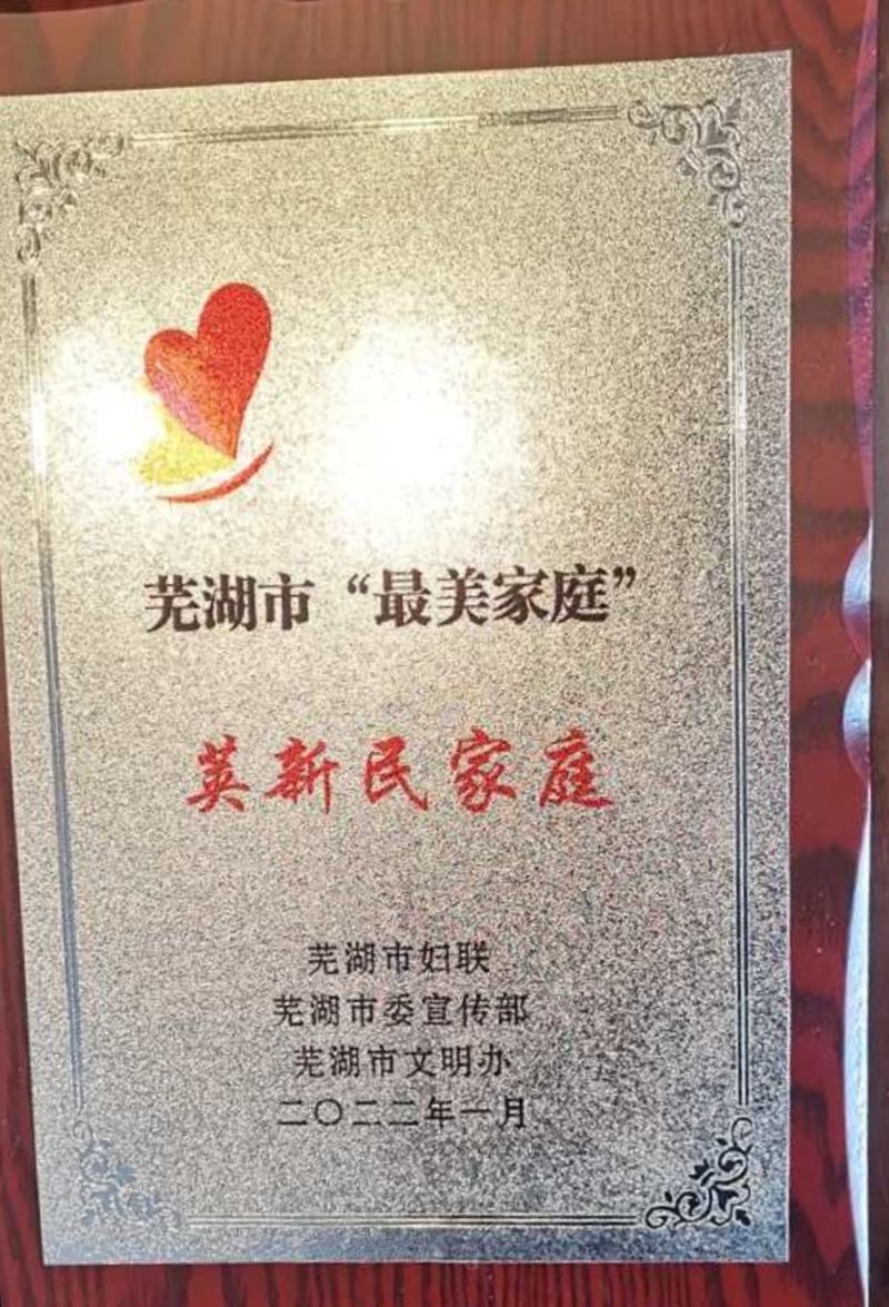 | 退休教师荚新民家庭荣获“芜湖市最美家庭”荣誉称号 |