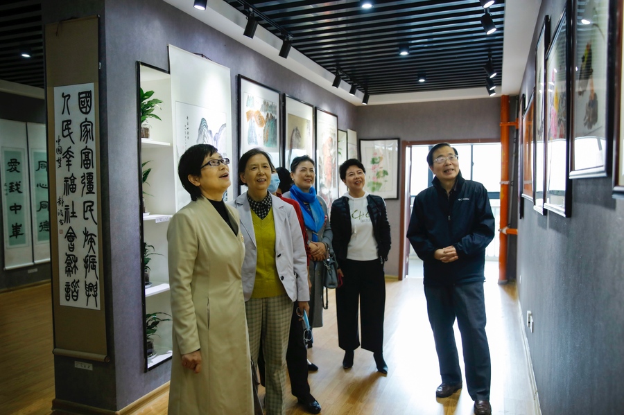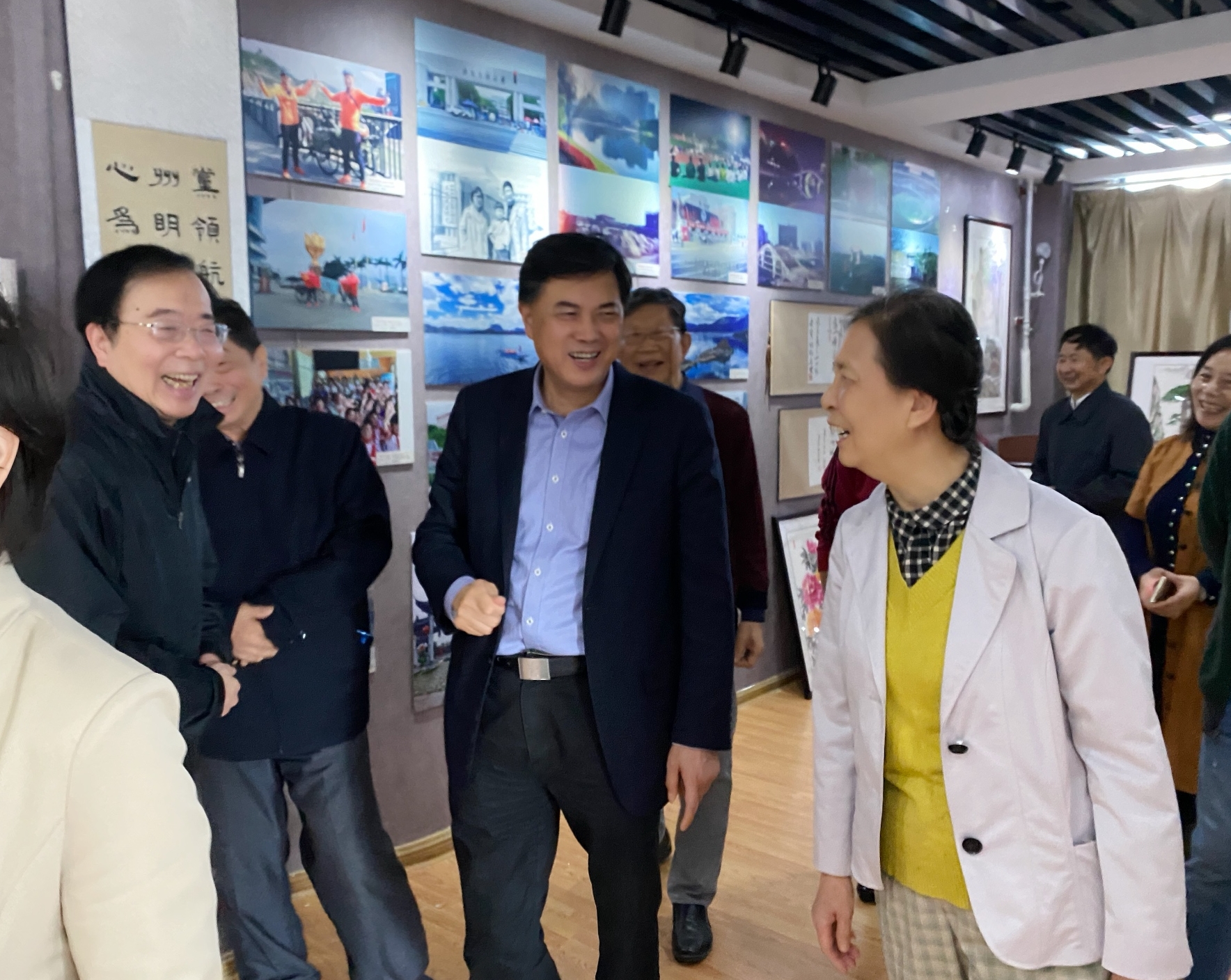 活动现场,领导和老师们饶有兴趣地参观欣赏,驻足其间。书画摄影作者纷纷向大家介绍自己书画摄影作品灵感来源及作品技巧。张志宏观看后频频点赞,他对离退休工作处在离退休教职工中开展的特色工作,取得的丰硕成果,做出的积极努力表示赞赏和肯定,他说老同志们通过书画摄影等艺术形式抒发自己对党和国家以及学校发展的关注和深厚情感,展示了我校离退休教职工永远跟党走、奋进新征程、喜迎二十大的良好精神风貌;他要求相关职能部门特别是离退休管理部门要多搭平台,开展形式多样的学习教育活动,不断丰富离退休教职工晚年业余文化生活,同时也要充分发挥老同志们的政治优势和经验优势,依托关心下一代工作平台在学校师德师风建设中发挥积极作用。苏国红看完作品后表示离退休老同志是学校建设发展的宝贵财富,他们昂扬的精神风貌和乐观的生活态度为广大教职工树立了榜样,在金秋岁月里展现艺术人生,她要求离退休工作处要继续创新工作和服务,积极收集校史资料,让老同志们在校史建设中发挥积极作用;叶常林对老师们的作品也高度赞扬,表示学校的建设发展就是一代代安工程人的接续奋斗和精神传承,老同志们用画笔和镜头书写初心,用热情和奉献助力学校不断前行。程双四认真欣赏了每幅作品,他说书画艺术不仅能陶冶情操,静心养性,而且对于净化校园文化环境,提高人文素养也有独特的作用,丰富的艺术作品展现了老同志们不忘初心,喜迎二十大的美好愿望。