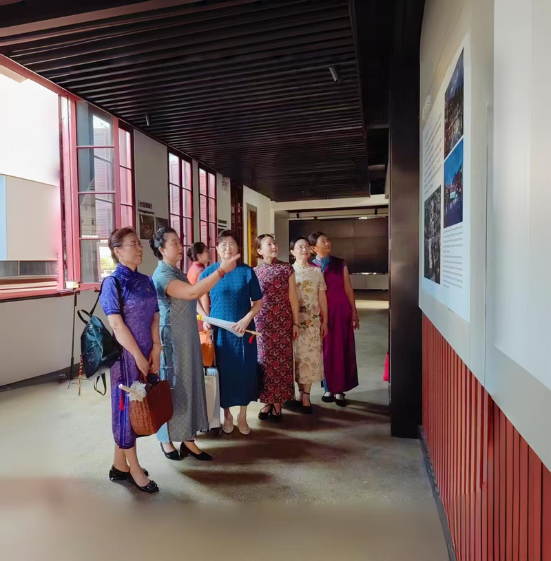 老师们身着各式旗袍,或典雅端庄,或婉约秀丽,仿佛一幅流动的东方画卷。她们在古朴建筑之间缓步而行,参观了学校旧址的历史展览,聆听了建校初期的办学故事,追忆先贤的教育情怀。在讲解员的带领下,老师们了解了学校90年的发展源流,九十载春秋更迭,育人初心始终如一。 老师们通过优雅和自信的行走展示,呈现了新时代女性的风采与文化自信。旗袍协会功能型党支部还举行了特殊的主题党日活动,以实际行动表达“不忘初心、牢记使命”的信念与担当。 校旗袍协会自成立以来,一直致力于弘扬中华优秀传统文化,提升教师人文素养,展示女性教师的独特魅力。此次活动既是对学校办学历程的致敬,也是对教育初心的再一次回望。“桃李芬芳”不仅象征着安徽工程大学九十年育人结出的累累硕果,也寓意广大教职工在传承与创新中不断续写教育的华章。旗袍之雅韵,映照着学校始终坚持的文化底色与精神风貌。