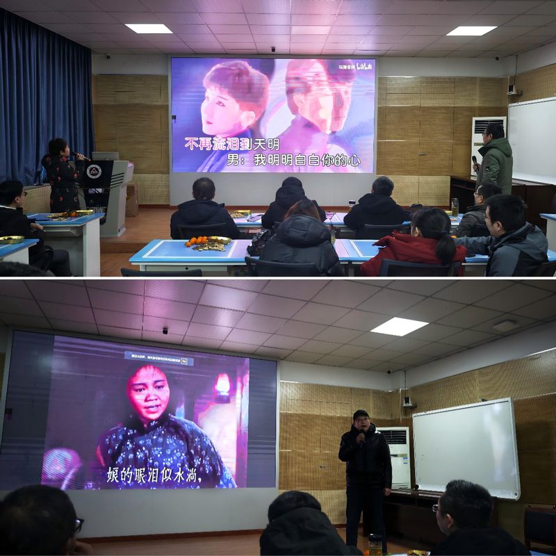 当真挚的新年祝福温暖了整个会场后,现场观众热情高涨,纷纷亮出“绝活”,精彩纷呈的文艺表演环节接踵而至。刘艳副院长字正腔圆地演唱黄梅戏《女驸马》中的选段《谁料皇榜中状元》,唱腔婉转动人,曲调质朴灵动,让现场观众感受到了中国传统文化的独特魅力。薛正莲教授与聂光军教授深情对唱经典歌曲《明明白白我的心》,情意绵绵,优美动听,唱不尽心底那份最真挚的爱意。工会主席项驷文老师带来电影《洪湖保卫队》中的插曲《看天下劳苦人民都解放》,瞬间将所有人的思绪带回到那个艰苦而火热的年代,深深触动了大家的心弦,发人深省。