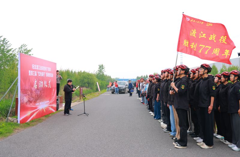为庆祝中国共产党成立105周年和渡江战役胜利77周年,4月20日,我校与保定街道团洲村联合开展纪念渡江战役胜利77周年暨第三届“红色骑行”思政教育活动。校党委常委、副校长张开炳,校党委宣传部、学生处、安全管理处、工会(离退休工作处)、校团委、校关工委等职能部门及马克思主义学院负责人及教师代表,安徽省离退休干部宣讲团首批成员,校“红色骑行”思政工作室负责人赵国庆、曹锦芬,保定街道党员干部,第九批驻村工作队成员、团洲村干部,保定街道同心圆党建共建成员、我校学生代表及保定街道中学生代表累计近100人参加此次活动。活动由校党委宣传部(统战部)常务副部长王勇智主持。