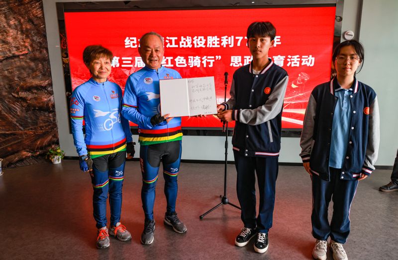 据悉,学校已连续三年创新开展“骑行+参观+党课”的亲历式思政教育,旨在推进思政教育走深走实、入脑入心、落地见效。校国旗护卫队机制248金小开说:“参加纪念渡江战役77周年红色骑行,一路追忆百万雄师过大江的峥嵘岁月,我深刻感受到了先烈无畏牺牲、奋勇向前的渡江精神,今后将赓续红色血脉,以青春之力砥砺前行,勇担时代使命,不负盛世中华。”校国旗护卫队生工242陈陆辉同学说:“本次活动让我切身体会先辈行军的不易,回望百万雄师横渡长江的壮阔历史,革命先烈不畏牺牲、奋勇拼搏的精神令人动容。这段红色历史直击心灵,我深受洗礼。今后我将传承红色血脉,扛起青年责任,以奋斗姿态砥砺前行。”